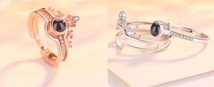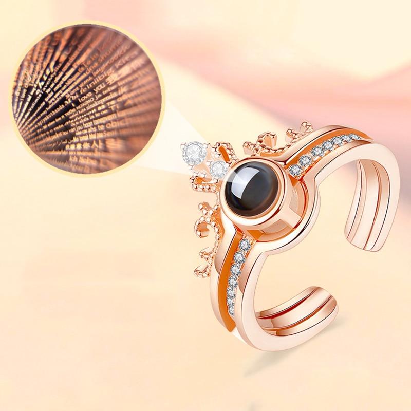 Um passeio de gôndola ao luar. Champanhe sob a Torre Eiffel. Um passeio de mãos dadas através de uma colina irlandesa. Às vezes você não pode colocar o amor em palavras, mas quando o faz, faça-o lindamente em 100 idiomas. Esses encantadores colares e anéis são decorados com uma pedra de zircônia clara que grava “I Love You” em 100 idiomas. É uma lembrança delicada que fica perto do coração do destinatário, onde quer que ele vá.