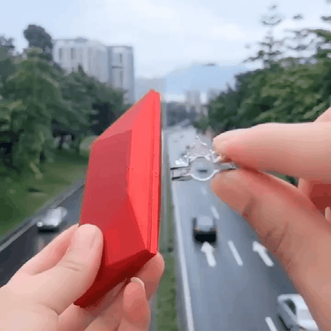 Apresenta “Eu te amo” em 100 idiomas gravados em nano micro escultura . Você pode vê-lo através de todas as lentes padrão de câmera / smartphone! Projete o coração central em um fundo preto com a lanterna da câmera para mostrar seu amor