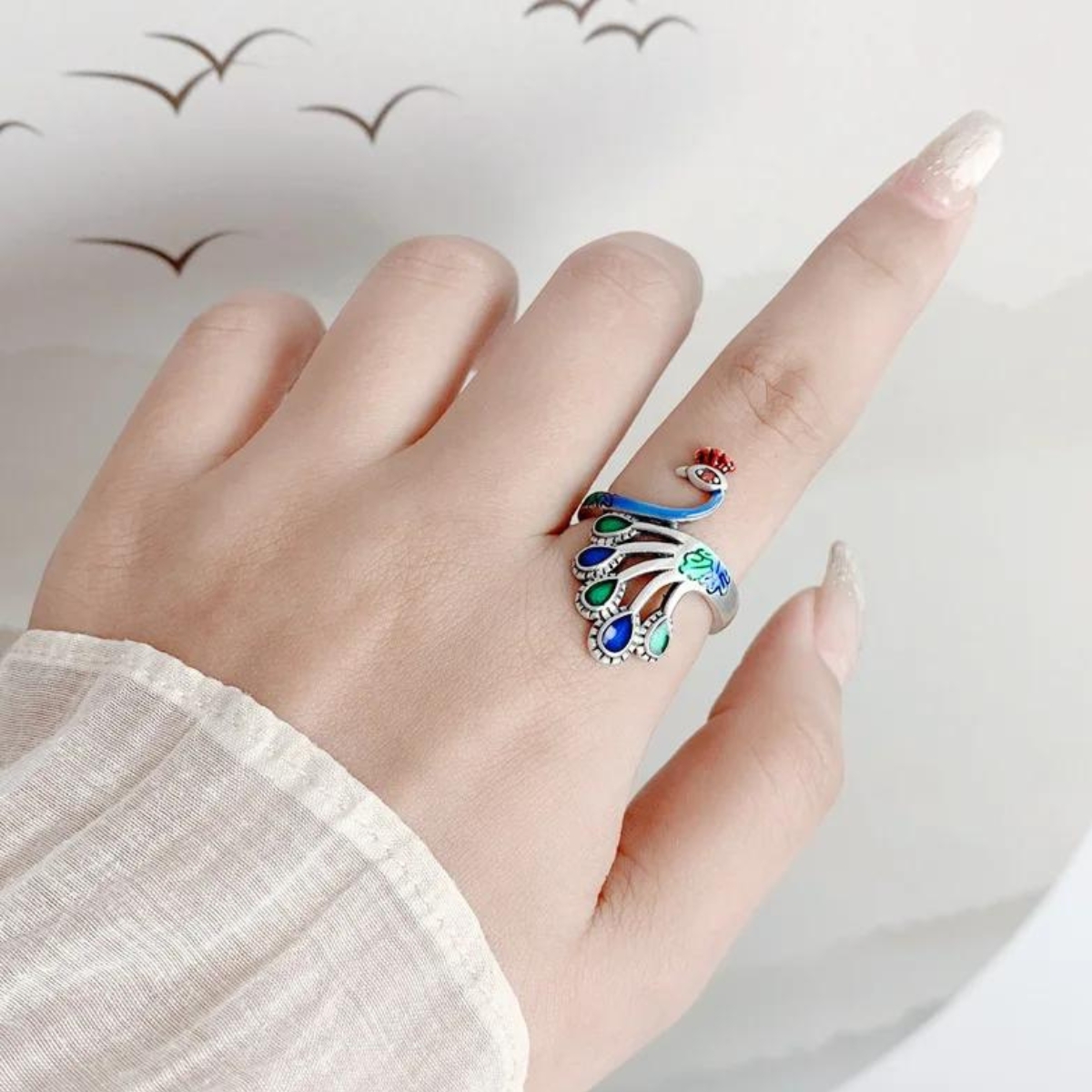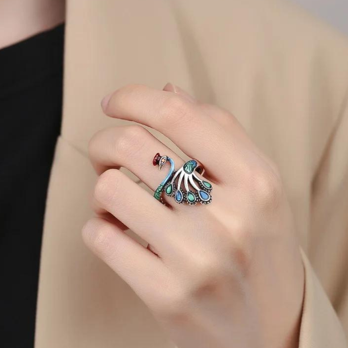 Para as mulheres que buscam acessórios que contem histórias, reflitam sua personalidade distinta e que exalem um encanto retrô, esta peça é uma escolha verdadeiramente excepcional. O Anel Feminino Exotic Majesty é uma obra de arte meticulosamente trabalhada que captura a majestade e a beleza exótica do pavão, transportando você para uma era de glamour e elegância vintage. Feito com prata esterlina 925 de qualidade premium, este anel não só é deslumbrante à vista, mas também é durável e resistente ao desgaste.