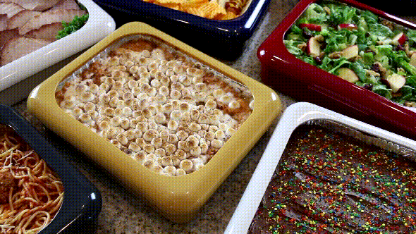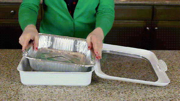 Aproveite a conveniência de cozinhar em uma panela e impressionar seus convidados, servindo em uma bandeja . Chega de panelas sujas para esfregar ou travessa suja para levar para casa – basta remover a panela de alumínio e limpar a sua bandeja Deluxe!