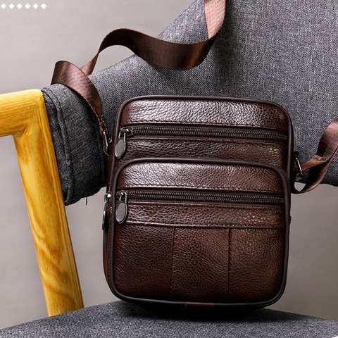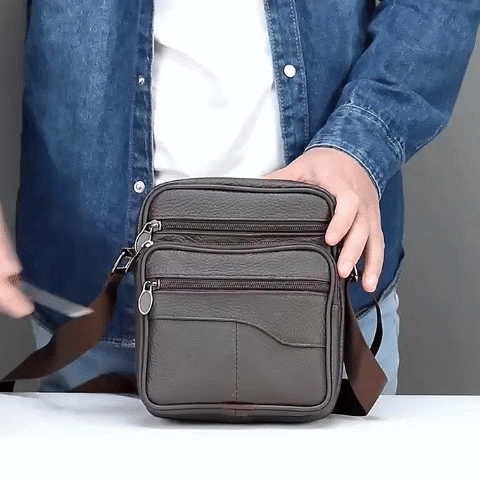 1x Bolsa de Ombro Masculina de Couro