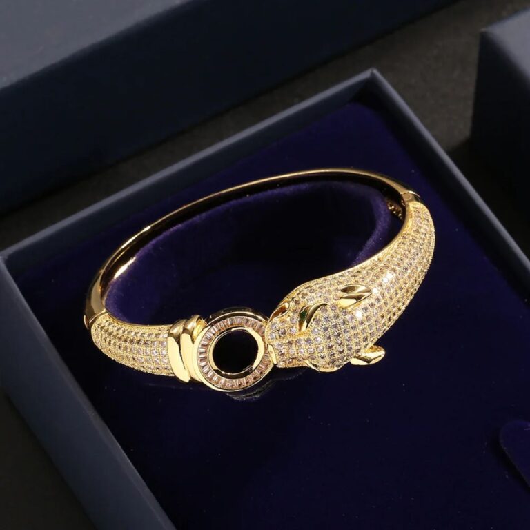 Desperte seu espírito ousado com a Pulseira Feminina Panther, um ícone de moda que vai além dos acessórios convencionais. Esta peça excepcional conta com um design de pantera, cravejado e único, onde a elegância encontra o luxo indescritível.