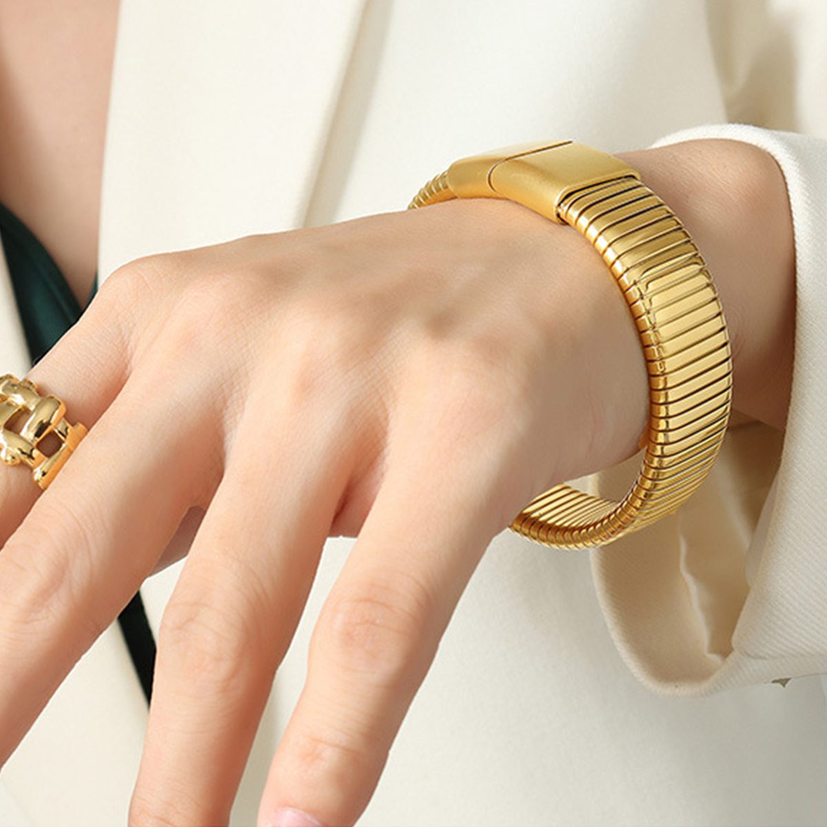 A sofisticação é uma marca registrada da mulher moderna. Para aquelas que buscam um acessório coringa que seja marcante, mas elegante, a escolha certeira é o Couture Mesh. Feito em aço inoxidável, este bracelete rígido possui um fecho bonito que confere um acabamento impecável à peça. Disponível em duas opções de cor – dourado e prata -, esse é um acessório original e versátil, perfeito para complementar looks do dia a dia ou adicionar um toque de luxo em ocasiões especiais.