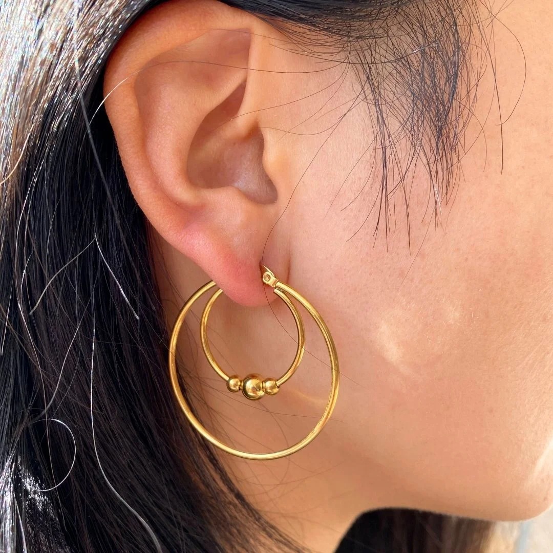 O brinco de argola é uma das peças mais clássicas do mundo dos acessórios e simboliza riqueza, poder, luxo. Do básico ao chique, esse acessório é uma escolha que combina com os mais diversos visuais e está sempre na moda. Pensando nisso, lançamos um modelo com um toque de personalidade para marcar presença por onde você passar. Composto por 2 argolas e detalhes em círculo no centro, traz um toque fashion e diferenciado à argola clássica, tornando essa peça tão única e original quanto você!