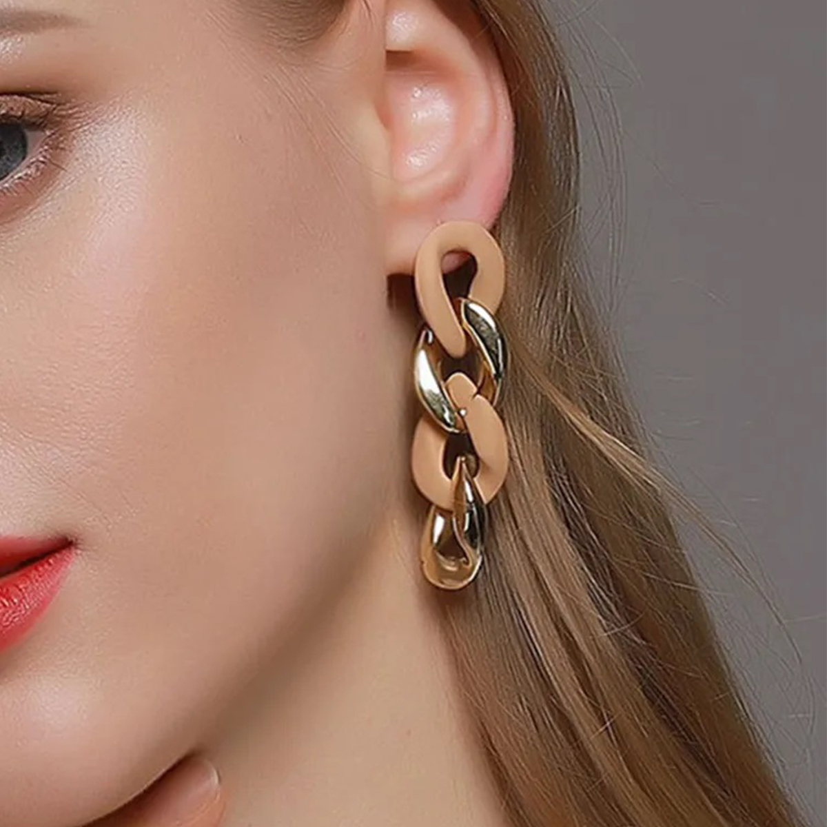Eles apresentam um design de corrente único, com elos que se conectam em um jogo de contrastes e harmonia. Os elos intercalam acabamento fosco e polido, criando um brinco sofisticado e diferente de tudo o que você já viu.