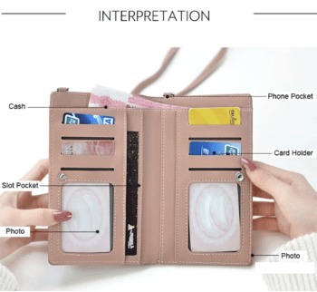 Crossbody Phone Bag é uma combinação perfeita de carteira e estojo de celular, vários compartimentos para colocação de cartões de crédito, dinheiro, fotos, etc.