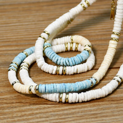 Cada pastilha feita a partir de conchas naturais é cuidadosamente escolhida para criar um choker que captura a essência do estilo sereia. Este acessório versátil é perfeito para mulheres que amam o mar e desejam incorporar a beleza do oceano em seu visual diário.