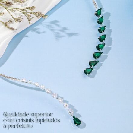 Com seu brilho intenso que captura olhares e corações, sua qualidade superior e cristais lapidados à perfeição farão com que você seja o centro das atenções em eventos de gala, festas requintadas e lugares sofisticados, irradiando uma aura de glamour incomparável. Cada detalhe dessa peça é uma obra de arte projetada para elevar sua beleza a patamares da verdadeira realeza.
