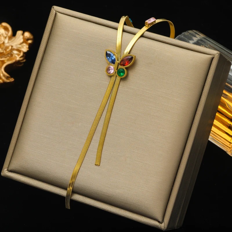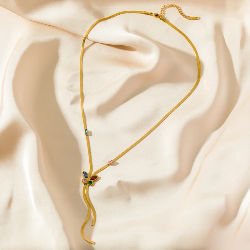 Com sua gravatinha graciosa e a borboleta colorida como destaque, este colar feminino é o acessório perfeito para complementar qualquer look. Sua qualidade premium em aço inoxidável garante durabilidade e resistência, enquanto sua gargantilha antialérgica proporciona conforto o dia todo.
