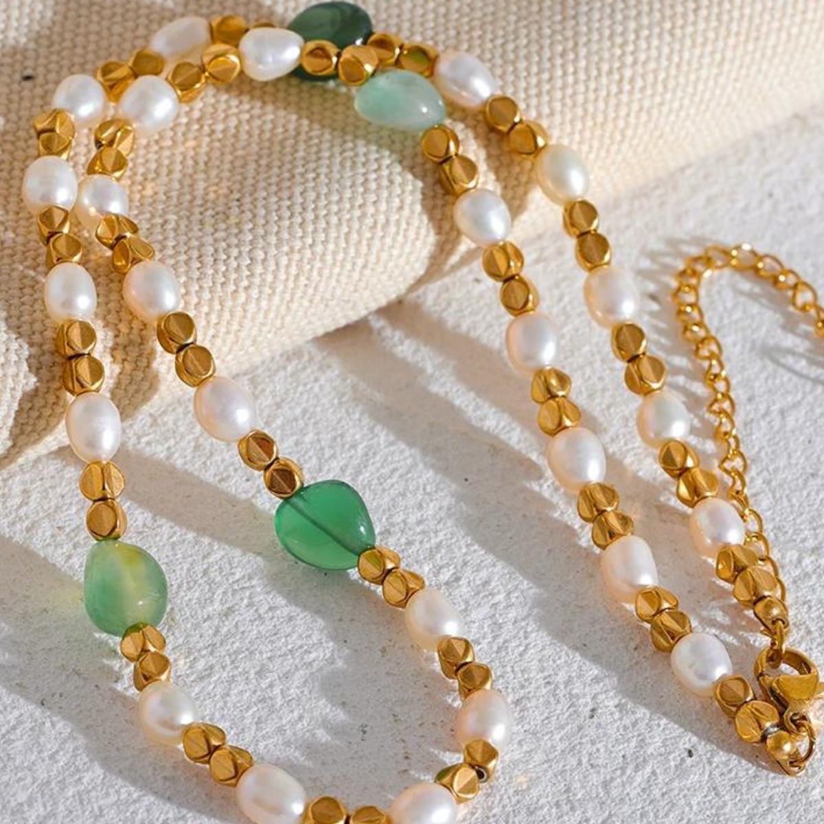 O fascinante e exclusivo Colar Feminino Encanto Riviera, é uma obra-prima que transcende a essência da feminilidade e da elegância atemporal. Este acessório vai muito além das tendências passageiras, capturando a beleza natural e a sofisticação eterna que toda mulher deseja. As pérolas de água doce, radiantes e exuberantes, refletem a pureza das águas tranquilas, enquanto os quartzos verdes, com sua tonalidade suave e serena, evocam a calma e a renovação da natureza.