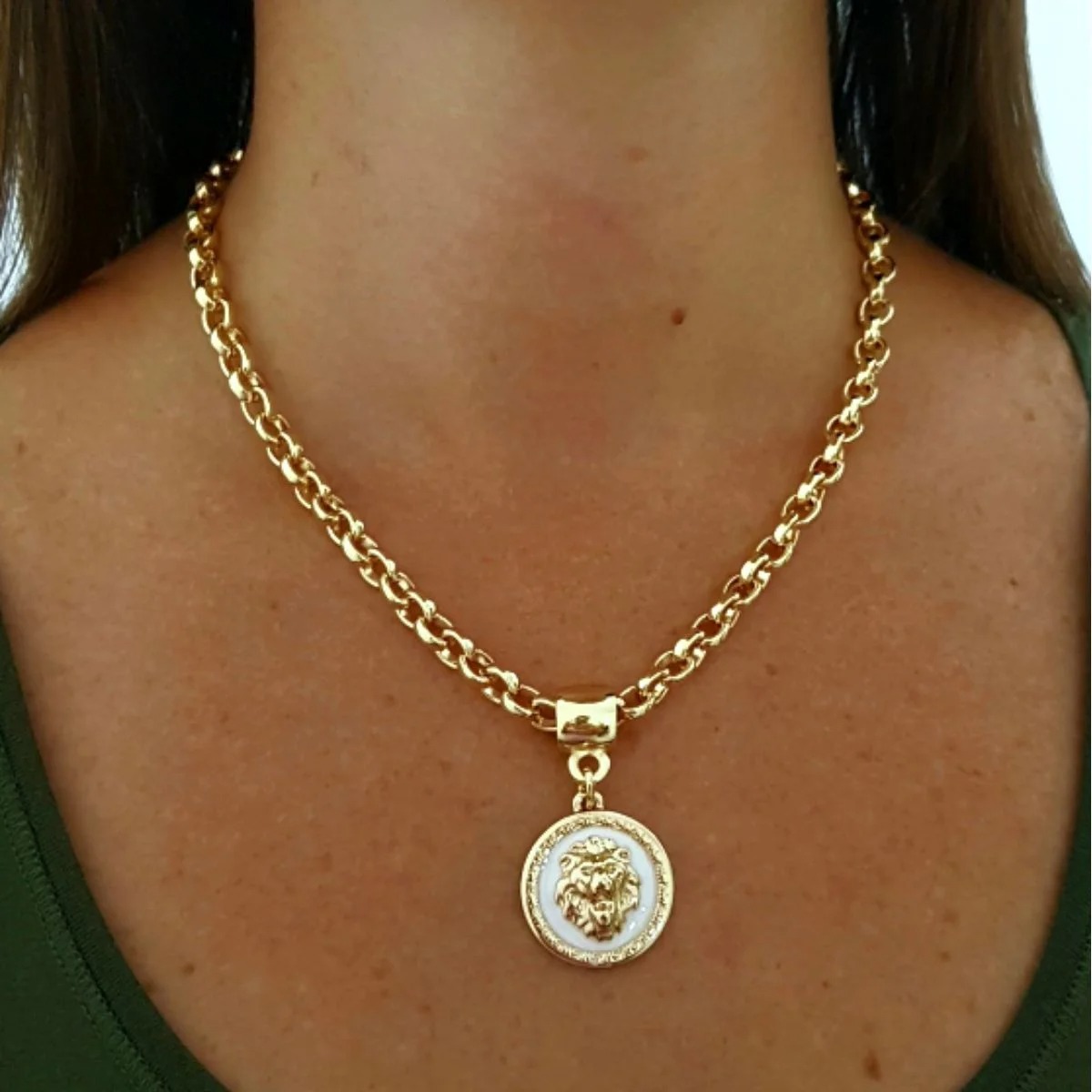 Um colar que representa a força interior feminina. Um pingente que mostra ao mundo o espírito de guerreira e garra inabalável. O leão representa liderança, nobreza e realeza e ter este símbolo no dia a dia atrai força, coragem e proteção. Feito em cobre com detalhes em zircônias para destacar ainda mais a elegância e sofisticação, com o leão em 3D que revela a sagacidade de quem o usa, destacando a determinação da mulher poderosa.