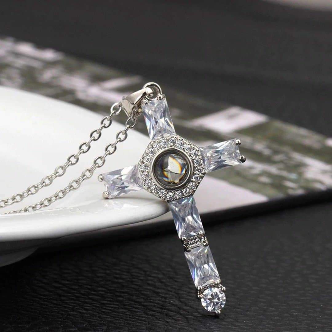 O Colar “Pai Nosso” possui um amuleto com dispositivo interno que colocado do lado ao contrário na lanterna no celular reflete (no escuro) a oração do Pai Nosso.