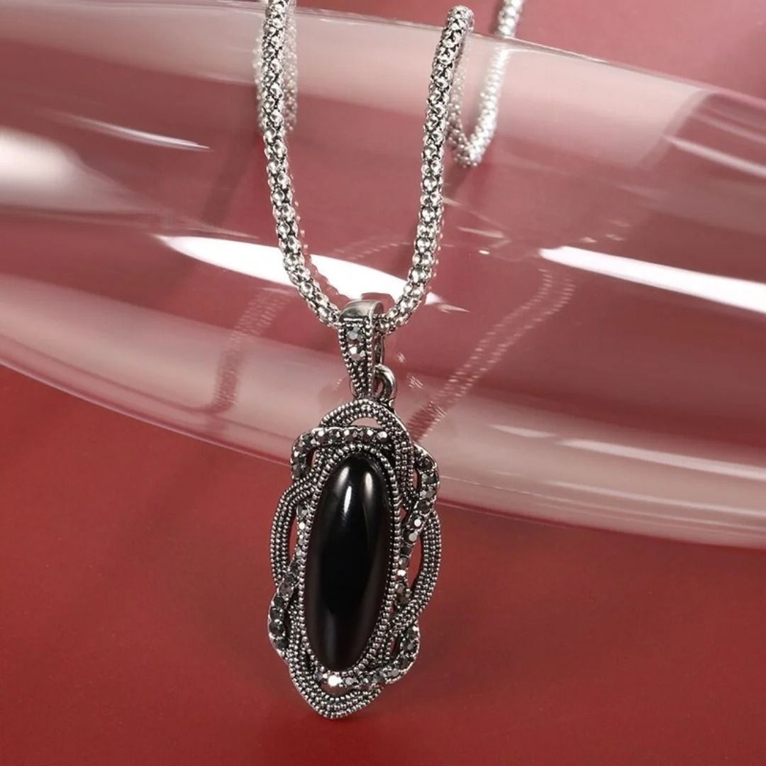 Um colar elegante, ideal para mulheres sofisticadas que prezam por extrema qualidade e estimam benefícios que vão além do estético. Uma semijoia feita em Prata Tibetana, cristal Ônix e Zircônias, pedras naturais que podem atrair boas energias, proteção e segurança para sua usuária. Adquira esse acessório luxuoso, destaque-se pelo bom gosto e sinta todos benefícios que ele pode te proporcionar!