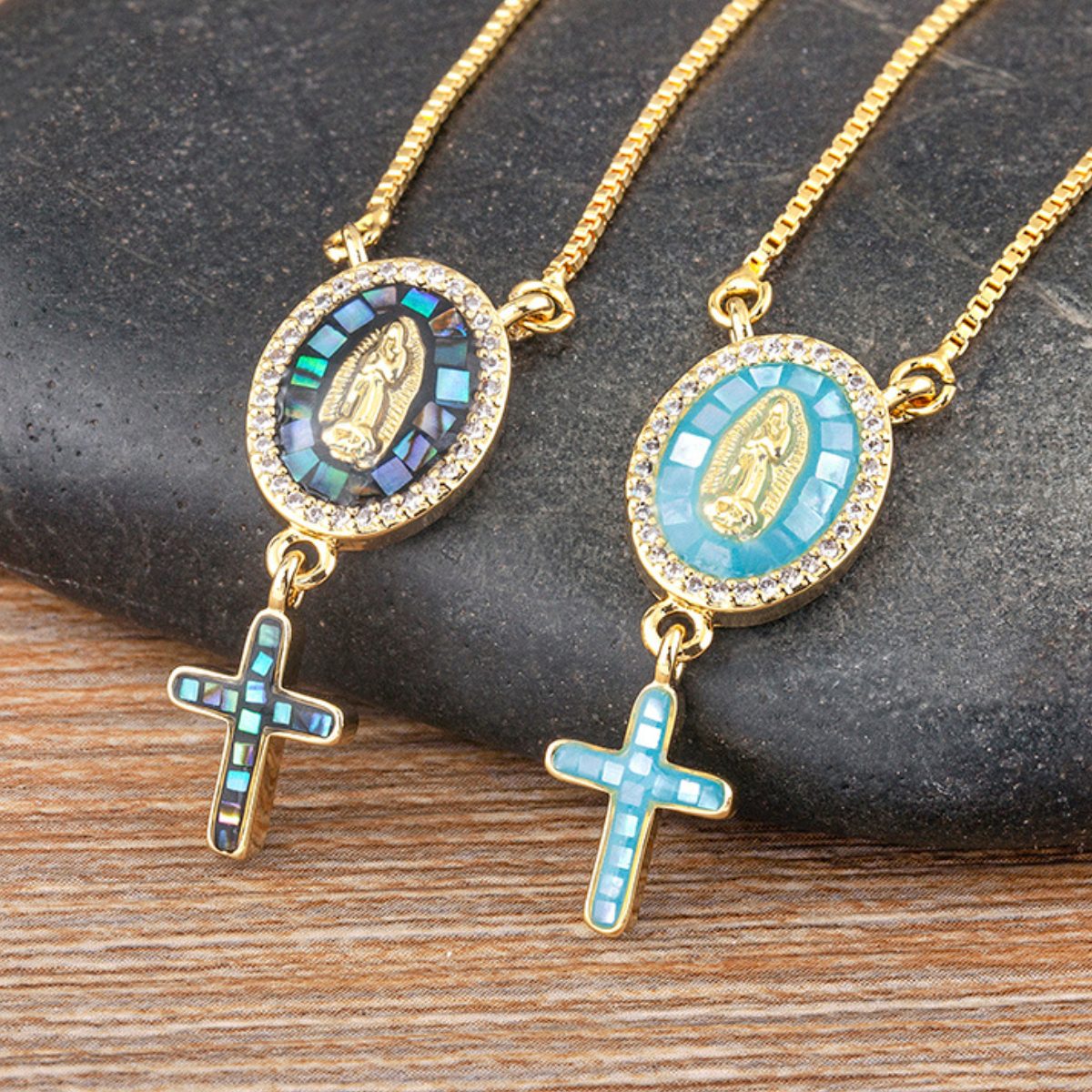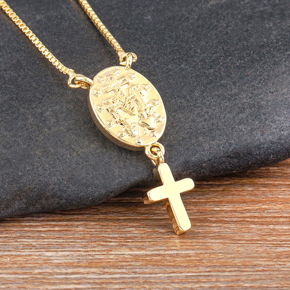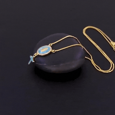 O Colar Feminino Divina Proteção possui um design encantador que traz a imagem sagrada da Virgem Maria, delicadamente enriquecida com deslumbrantes cristais geométricos. Cada pedra brilhante lembra o esplêndido vidro colorido das majestosas janelas de uma igreja, refletindo a luz divina com elegância. Confeccionado com o mais refinado banho de ouro, esse colar transcende qualidade impecável, durabilidade incomparável e um brilho que cativa o olhar. E para completar tamanha beleza, uma pequena cruz é adicionada, simbolizando a sagrada união entre fé e beleza.