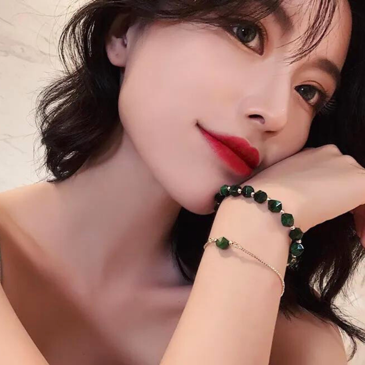 O Jaspe Verde, com sua tonalidade vibrante, reflete a beleza da natureza, é associado à harmonia, equilíbrio e ao crescimento espiritual. Sua presença nas pulseiras transmite uma sensação de tranquilidade e sofisticação únicos.