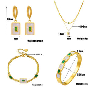 O design elegante trará um toque de luxo a cada momento da sua vida, do cotidiano a ocasiões especiais. Já a qualidade superior do Aço 316L garante que esse conjunto fará parte do seu guarda-roupa por muito tempo. Sinta a confiança fluir quando a elegância se entrelaça com a sua individualidade trazendo uma afirmação do seu poder pessoal. Seja a melhor versão de si mesma todos os dias com o Conjunto Feminino de Luxo