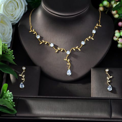 Feito em suaves curvas com lindos detalhes e incrustadas por luxuosas zircônias, ambas as peças possuem uma linda gota desta pedra única que arrematam e garantem um fino acabamento para este acessório. Além disto, este conjunto ainda é banhado a ouro ou prata, o que confere ainda mais sofisticação e brilho para quem o utiliza!