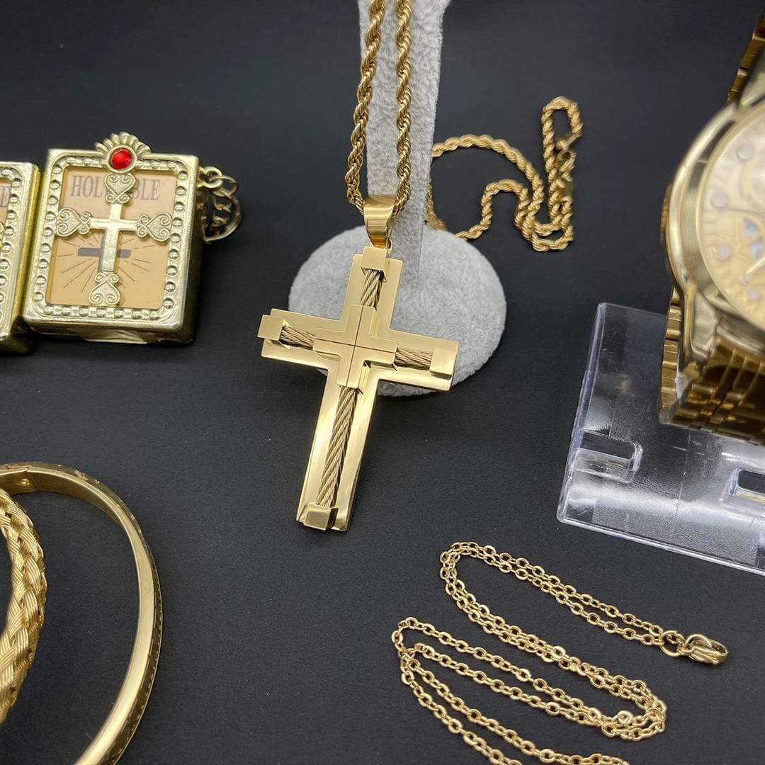 São 7 peças banhadas a ouro de alta qualidade que vão durar muito tempo! tudo isso por um preço imbatível. Esse conjunto possui peças extremamente detalhadas, feitas de Aço Inoxidável e banhadas a ouro que caracterizam não somente resistência, mas também sofisticação e modernidade. Você não encontrará nada igual em nenhuma outra loja!