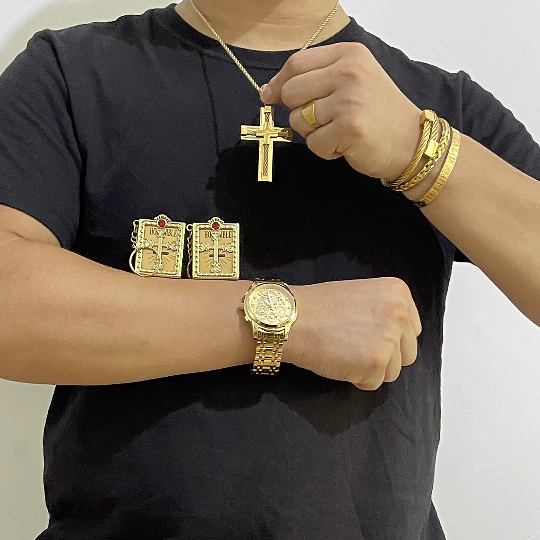 Não precisa usar todos produtos juntos, você pode misturar diferentes peças e montar seu estilo para diferentes ocasiões. Esse é um dos grandes diferenciais do Conjunto Premium – Ultimate Golden você pode combinar os acessórios com qualquer tipo de roupa, podendo usar tanto em eventos formais quanto em momentos mais casuais.