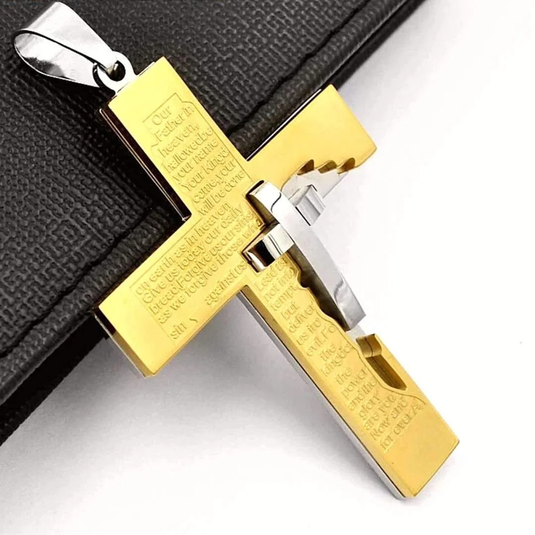 Com a Corrente em Aço Inoxidável – Light Shield, em opção toda Banhada a Ouro 18K ou com detalhes em aço de alta qualidade, você leva para onde for a proteção da oração do pai nosso. Pensada para homens fortes, imponentes e que procuram sempre representar sua fé e devoção, esse colar premium e exclusivo possui um design representativo e único, ideal para aqueles que creem na proteção divina. Manifeste a sua fé com um acessório especial e com design singular, cravado com uma cruz menor ao centro que representa a esperança e a vida!