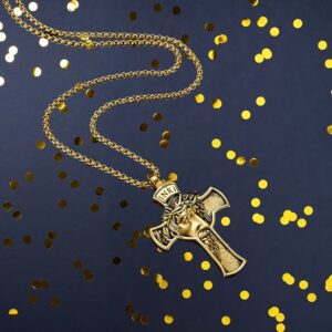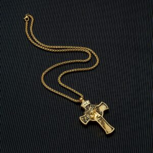 Esse é um crucifixo único e exclusivo com um design extremamente revolucionário, é uma peça que foge do padrão, planejado especialmente para aqueles que querem se destacar com algo inovador e diferente. Feito em Aço Inoxidável 316L e Banhado a Ouro 18k ele é resistente a corrosão e abrasão, é antialérgico e possui uma longa durabilidade. Expresse sua fé da melhor forma com o colar INRI.