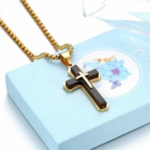 Um crucifixo religioso perfeito para o homem que possui uma fé genuína e que deseja demonstrá-la através de um item de qualidade PREMIUM. A Corrente com Crucifixo Forgiveness é o símbolo oficial do perdão e do amor de Deus dados a humanidade, aqui representado de maneira majestosa em um acessório feito em Aço Inoxidável, antialérgico, de design moderno e Banhado a Ouro 18k.