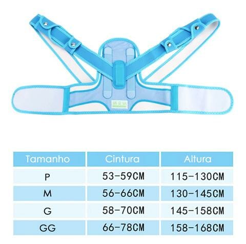 Disponível em diferentes tamanhos e cores, (Pink, Azul e Verde), é perfeito para meninos e meninas de todos os tamanhos. No inverno é possível até colocar a blusa sobre o corretor obtendo total discrição ao utilizá-lo.