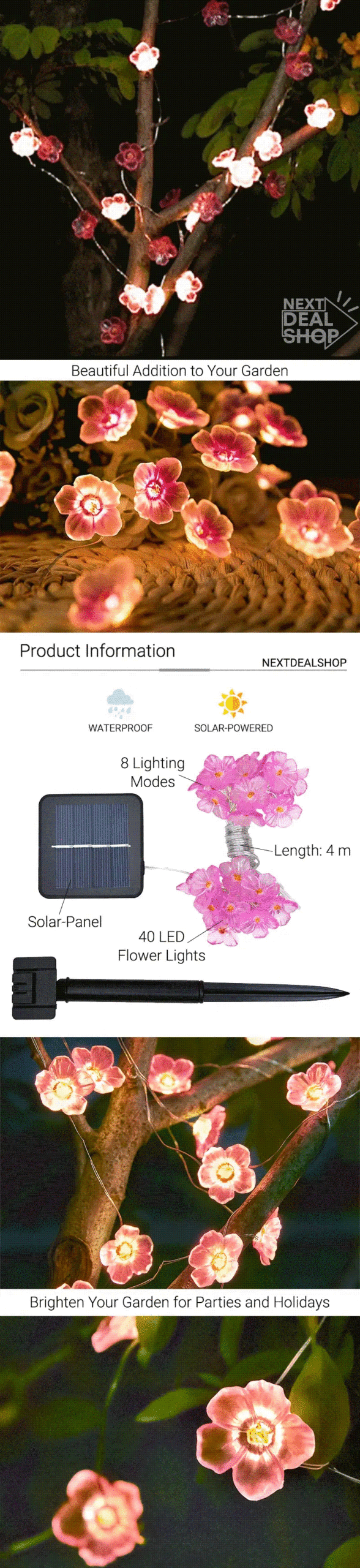 Estas lindas luzes de LED em flor de cerejeira com energia solar são uma bela adição ao seu jardim. As flores emitem um tom rosa sutil e podem iluminar seu jardim para festas, feriados ou apenas para decoração.