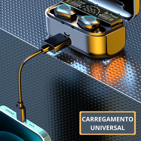 O fone sem fio conta com um display inteligente para você acompanhar o status real da bateria enquanto carrega.