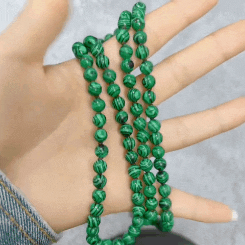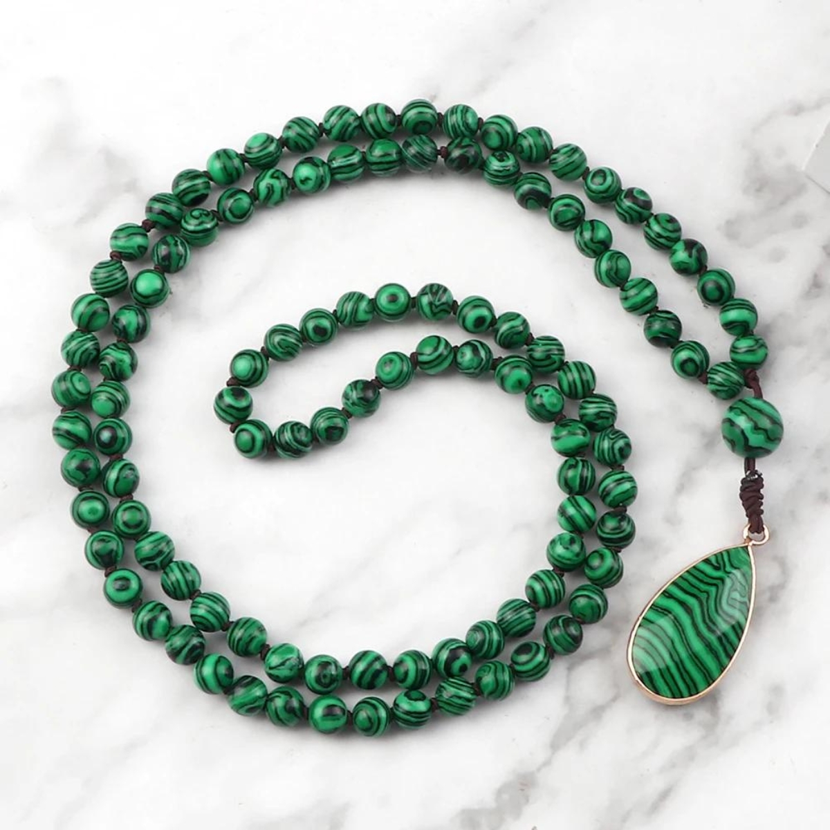 Transformação Positiva: a malaquita estimula mudanças benéficas, tornando esse Japamala uma ferramenta para inspirar transformações.