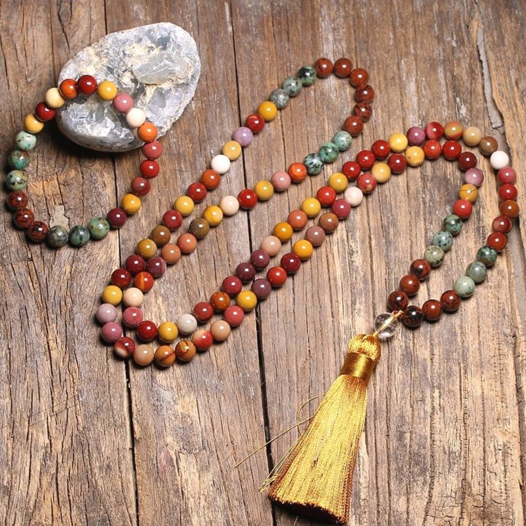 Atuando diretamente no seu poder intuitivo, esse Japamala é feito a mão e com quatro pedras poderosas: Obsidiana Mogno, Turquesa Africana, Jaspe Australiano e Quartzo Cristal. Juntas promovem benefícios como o alívio do estresse, aumento da autoestima, equilíbrio e vitalidade para o corpo e a mente, proteção contra forças negativas e crescimento interior. Acompanha uma pulseira de presente para ser o seu amuleto de sorte e proteção.