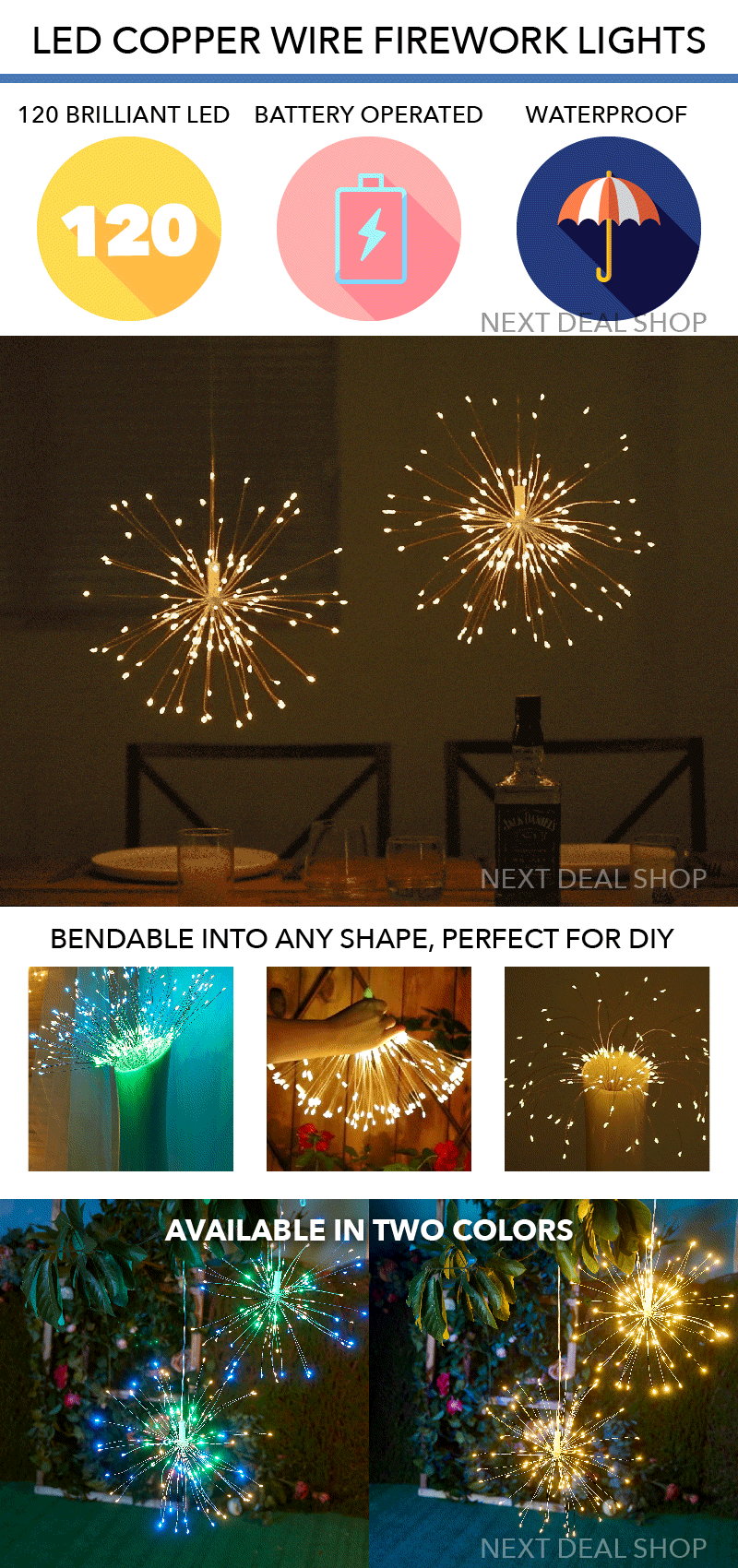 Fortes e flexíveis, elas podem ser dobradas da forma que desejar e podem ser penduradas facilmente em qualquer lugar com um gancho embutido. Transforme-as na forma de um buquê de flores elegante ou fogos de artifício deslumbrantes!