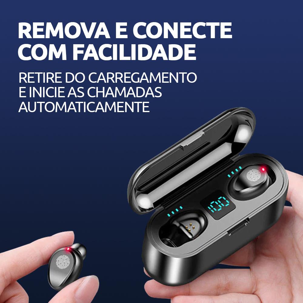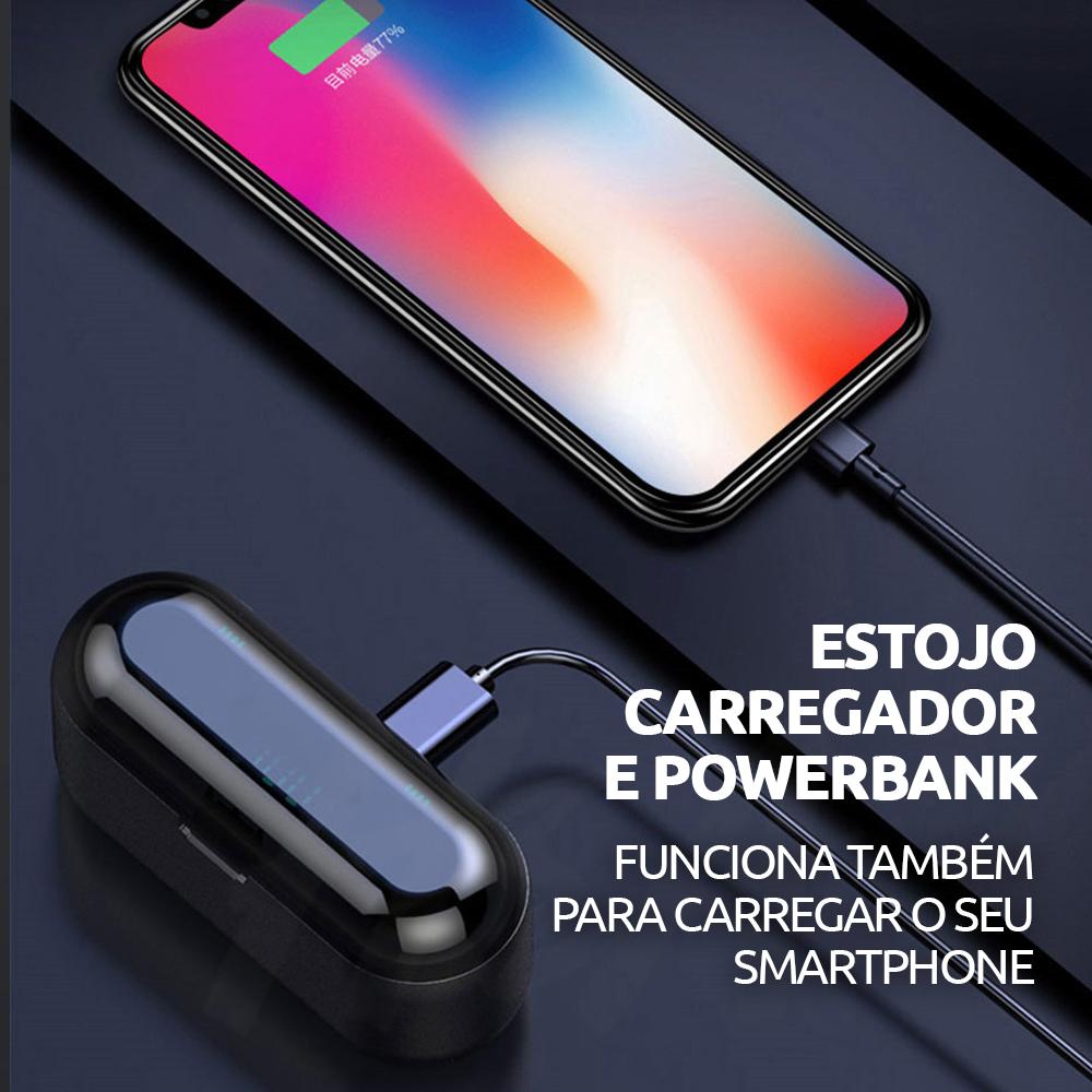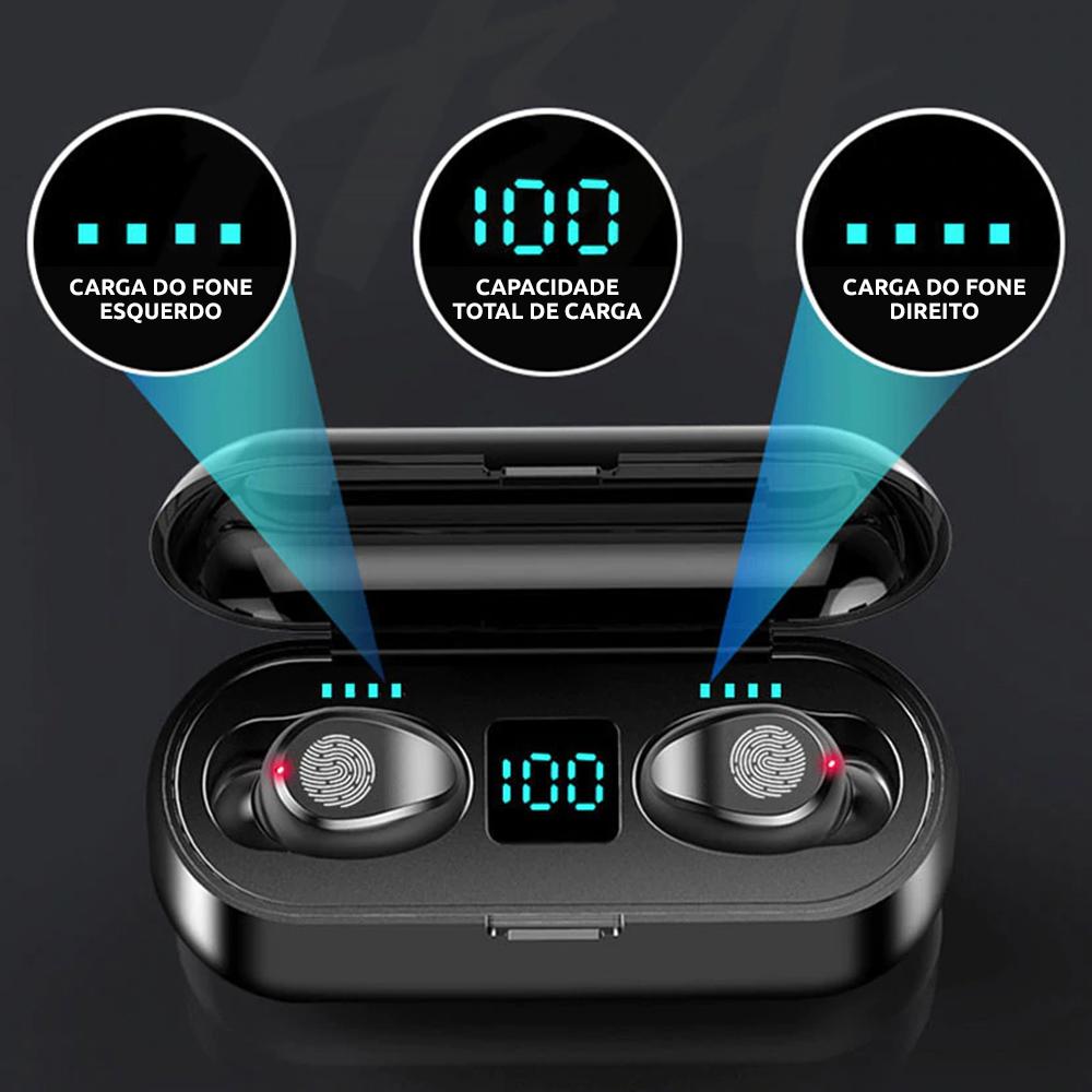 Estojo de Carregamento com tampa e display de avanço de carregamento total e individual de cada fone