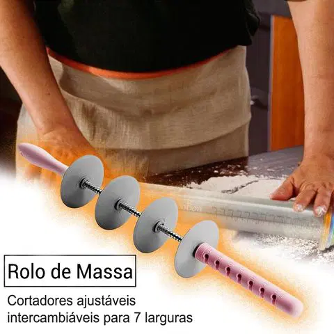 usos para rolo de massa: amplo uso para cortar massas frescas, massa para pães, brownies, biscoitos, lasanhas, etc.