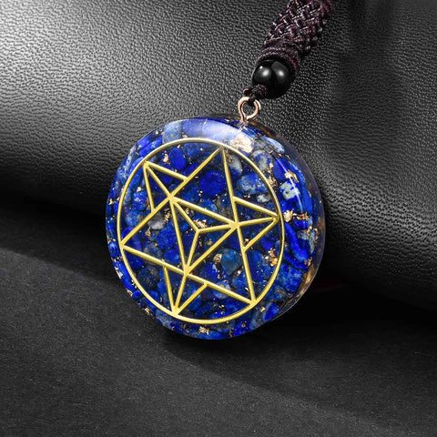 Carregue sempre a poderosa energia Orgone em conjunto das propriedades terapêuticas únicas do Lápis-lazúli! A Orgonite Merkaba é um instrumento pessoal que poderá lhe trazer força e proteção. Esta peça em forma de amuleto contém ainda um símbolo da Geometria Sagrada de grande significado, que pode lhe proporcionar uma fonte especial de cura e equilíbrio espiritual em sua vida!