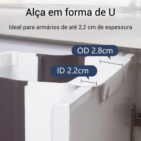 Fabricada em polipropileno grosso de qualidade premium que é duradouro e não tóxico. A barra fixadora na boca da lixeira mantém preso o saco de lixo. Este modelo dobrável inovador é ideal para armários de até 2,2 cm de espessura.