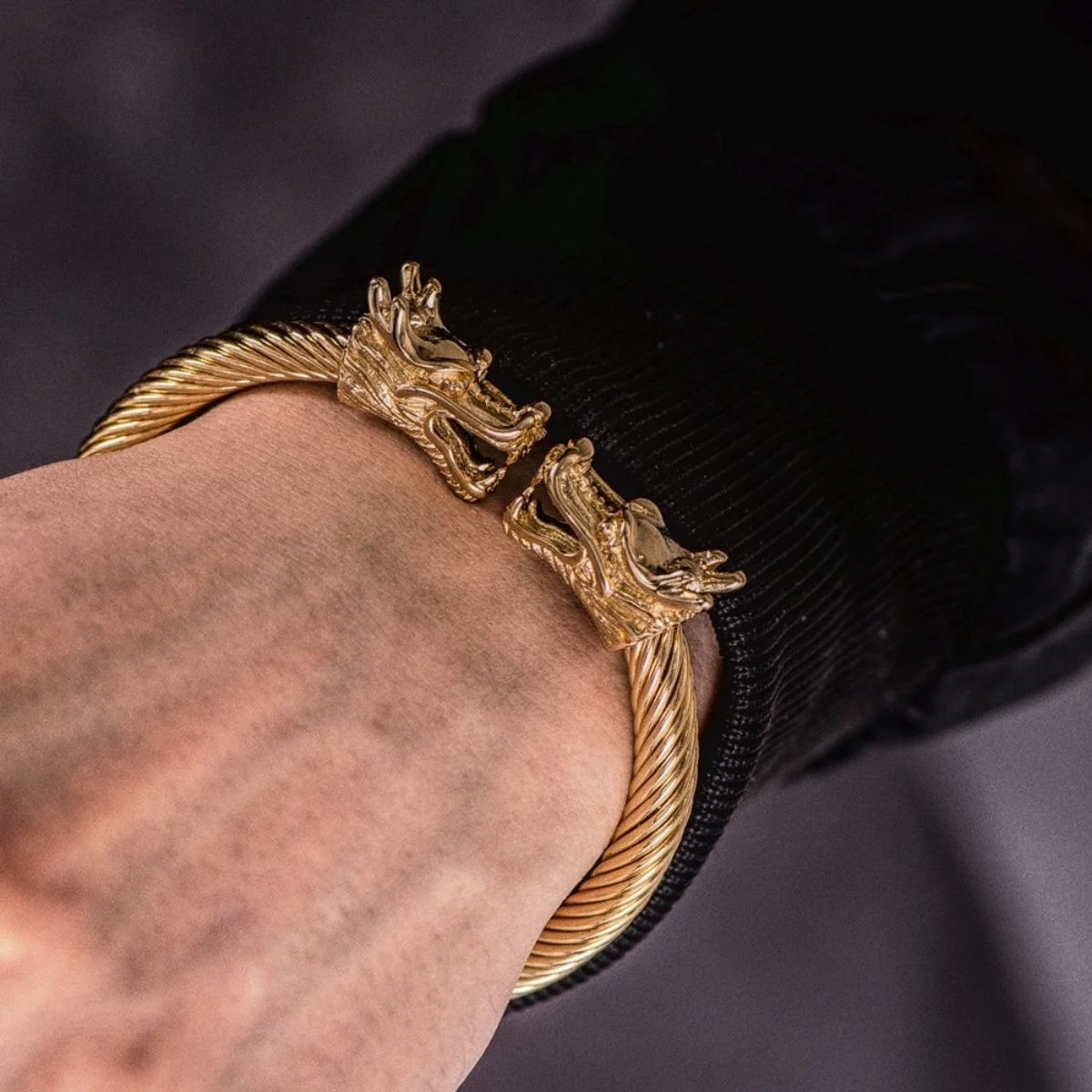 A Pulseira Dragon está diretamente ligada a simbologia de prosperidade, sorte e abundância que o dragão representa. Trata-se de uma peça única que esbanja personalidade, levando em conta sua qualidade material que revela a robustez e brilho que o acessório carrega. Desenvolvida para os homens que querem se destacar com luxo e sofisticação, mas que apreciam uma peça com significado e reconhecem a força e o poder de um dragão.