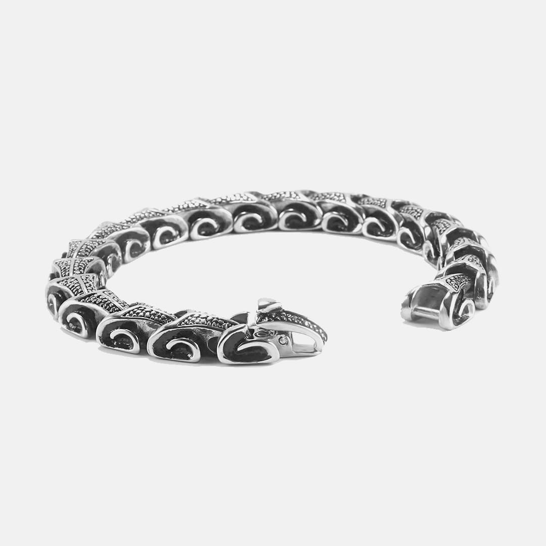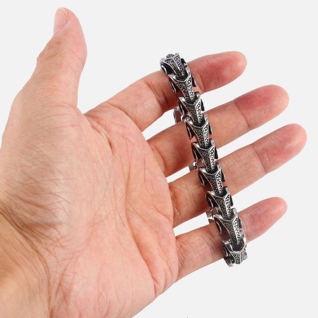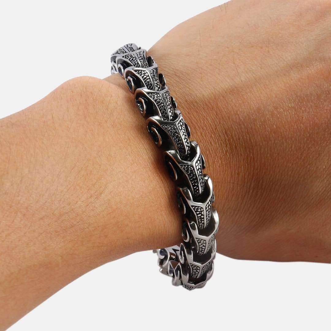 Pulseiras são uma tendência na moda masculina, sendo muito utilizadas na Europa. Este acessório é capaz de complementar seu visual e deixá-lo ainda mais estiloso! A Pulseira Draco possui um design exclusivo e imponente, com detalhes únicos inspirados nas escamas dos dragões, ela é capaz de impressionar qualquer pessoa.