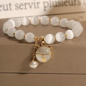 Pulseira Pedra Opala Com Pingente de Gato – Fascinating