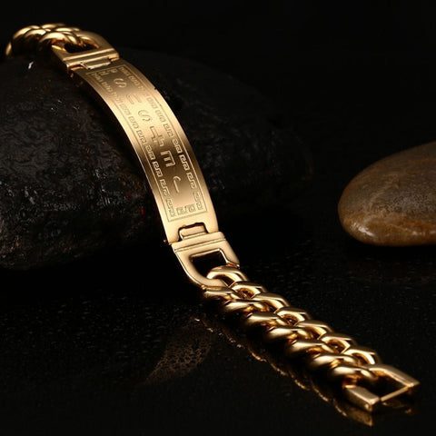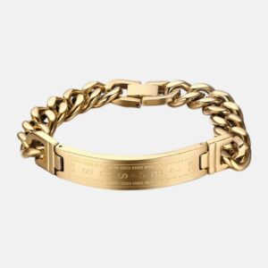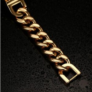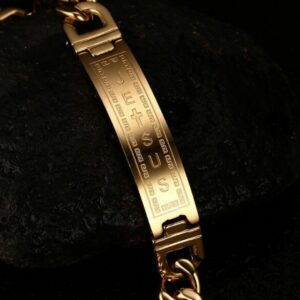 O acessório é feito de Aço Inoxidável, material com resistência de alto padrão. A peça também é banhada a ouro, dando brilho e traz maior durabilidade a este aspecto. A pulseira é trabalhada em seus mínimos detalhes e o resultado é um acessório Premium em sofisticação e imponência.