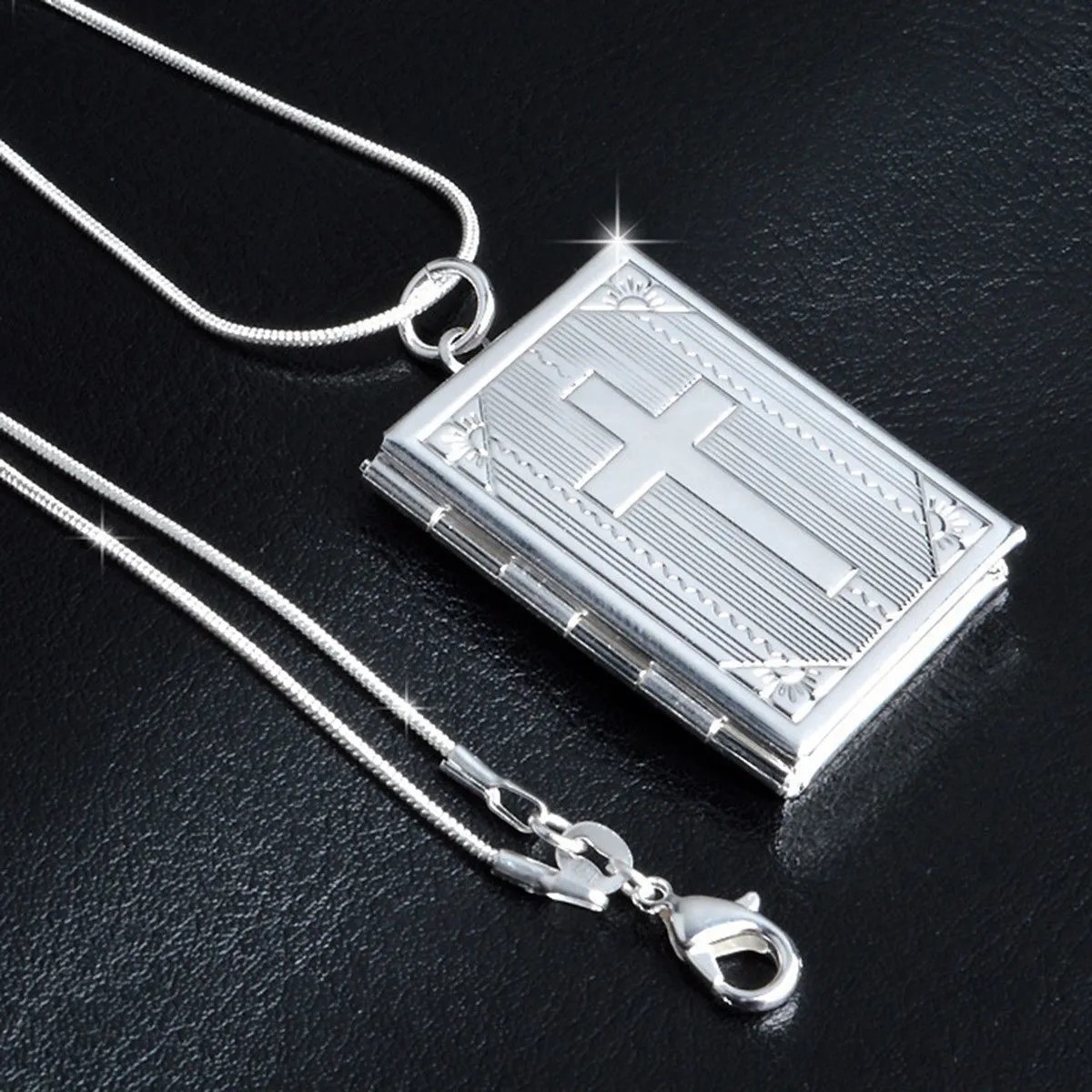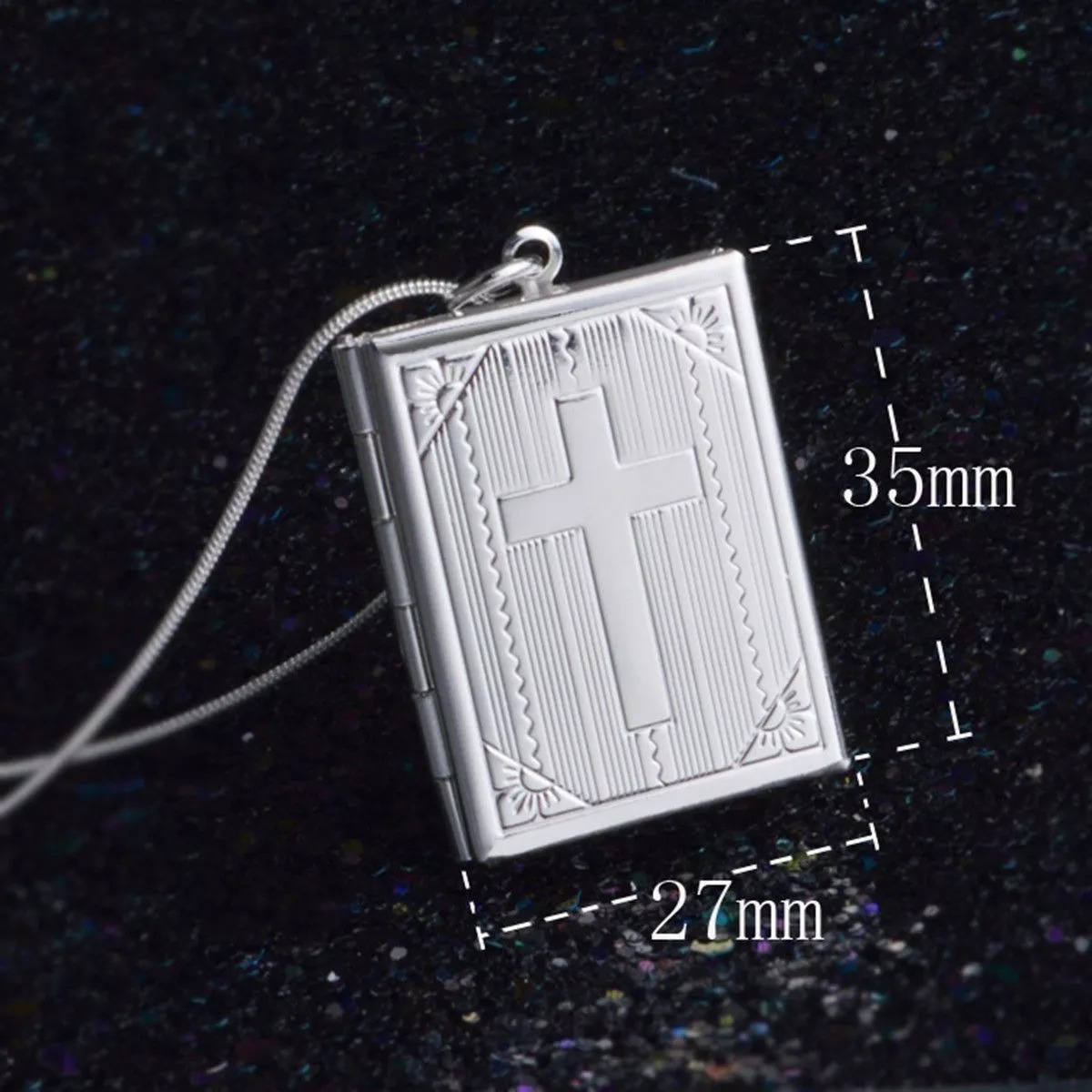 Conecte-se cada vez mais com a sua fé com o Relicário Banhado a Prata – Bíblia Sagrada, um amuleto de testemunho de devoção eterna. Feito para te acompanhar em todos os momentos da sua vida, este relicário transcende o tempo, expressando a sua fé no sagrado e preservando as memórias preciosas que o tornam único.