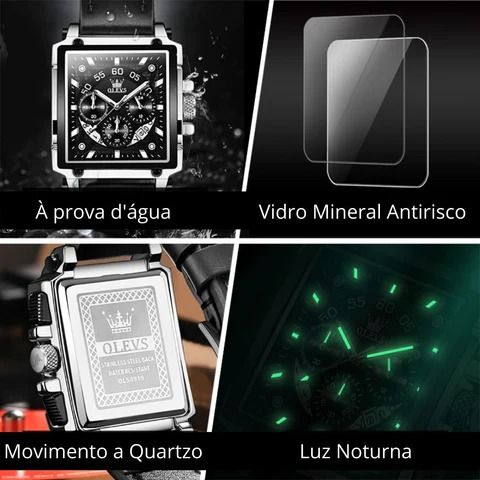 Um dos diferenciais do Relógio Masculino Quadrado é seu formato e sua construção, um modelo à prova d’água 3 ATM e choque, o que permite usar na chuva, lavar as mãos e até lavar o carro. Além disso o relógio possui Movimento a Quartzo, uma tecnologia que une um cristal de quartzo em seu interior aumentando a precisão e fazendo com que sua bateria dure longos anos.