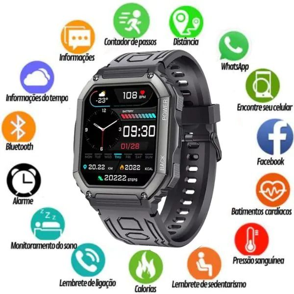 Com poucos toques você faz ligações, monitora sua saúde e atividades físicas, controla suas músicas, visualiza suas notificações e muito mais, tudo por conexão Bluetooth.
