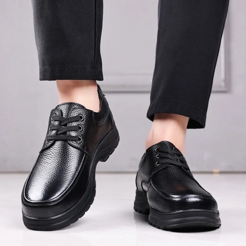 Feito em couro premium para garantir a máxima qualidade aos seus pés e proporcionar um caminhar mais confortável e sem dores; O sapato masculino de couro possui um corpo respirável para bloquear a proliferação de bactérias e não causar maus odores.