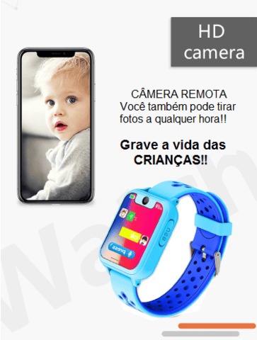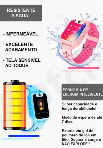 A principal função deste relógio é localizar com precisão e em tempo real a criança que esta usando!