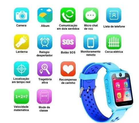 O SmartWatch Kids ajuda a proteger as crianças do perigo por funções acima. Mais do que apenas um relógio, o S6 é um relógio e telefone inteligente.