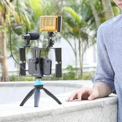 Itens inclusos: 1 Suporte de celular Profissional,1 Lâmpada de LED, 1 Microfone, 1 Tripé